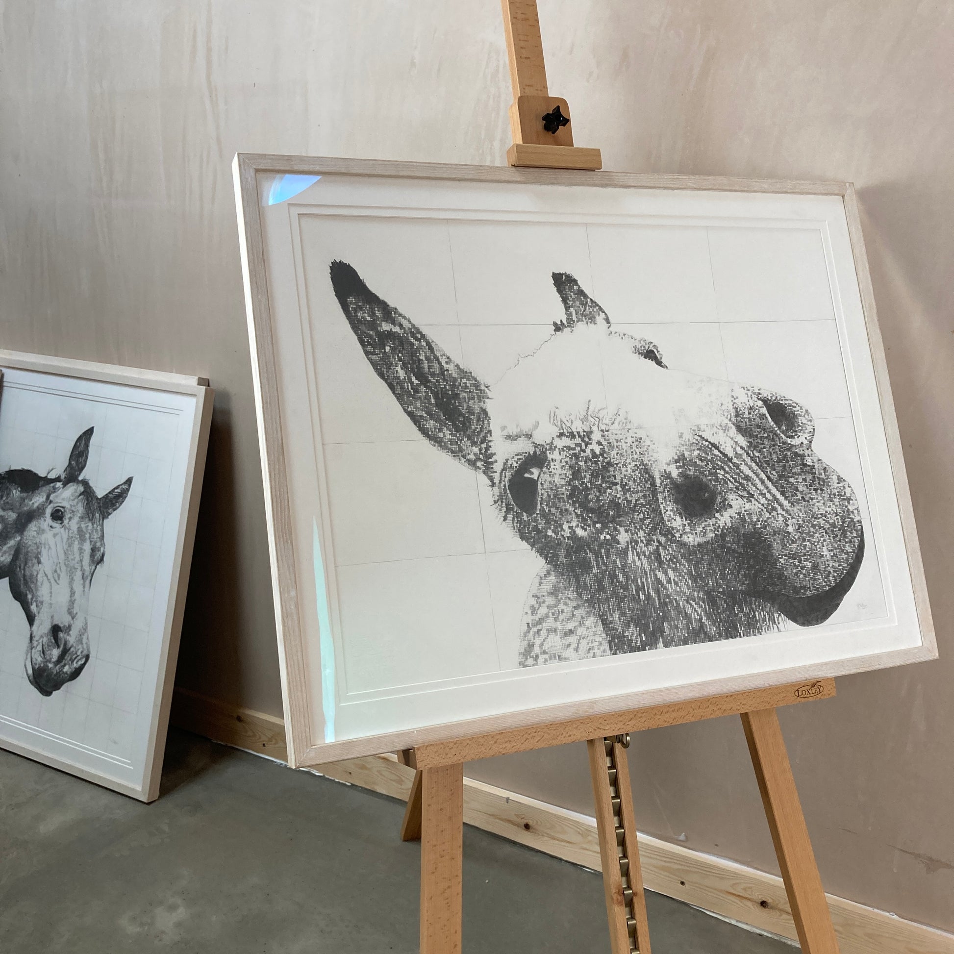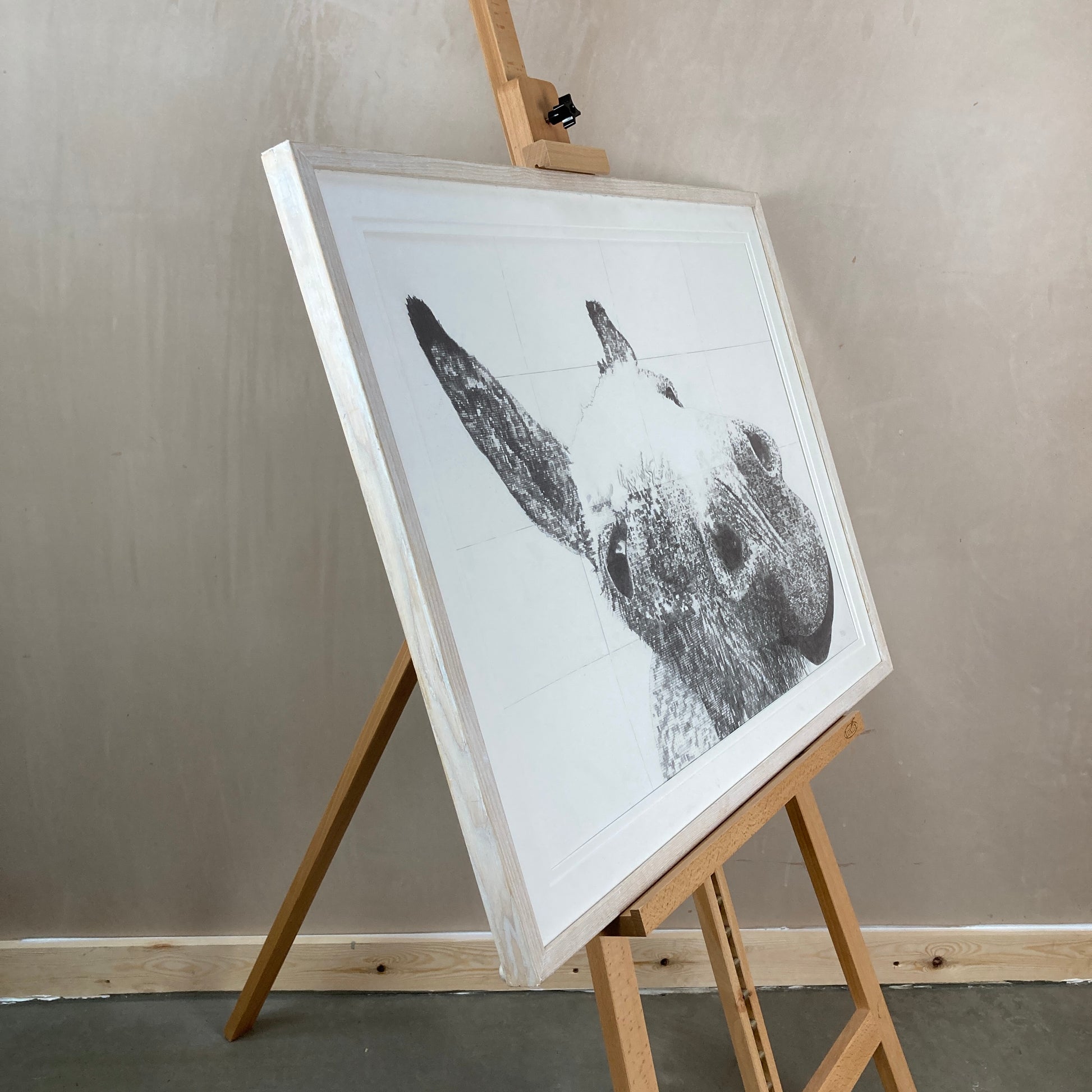 Large original framed drawing of a donkey, a labour of love that took over 40 hours.