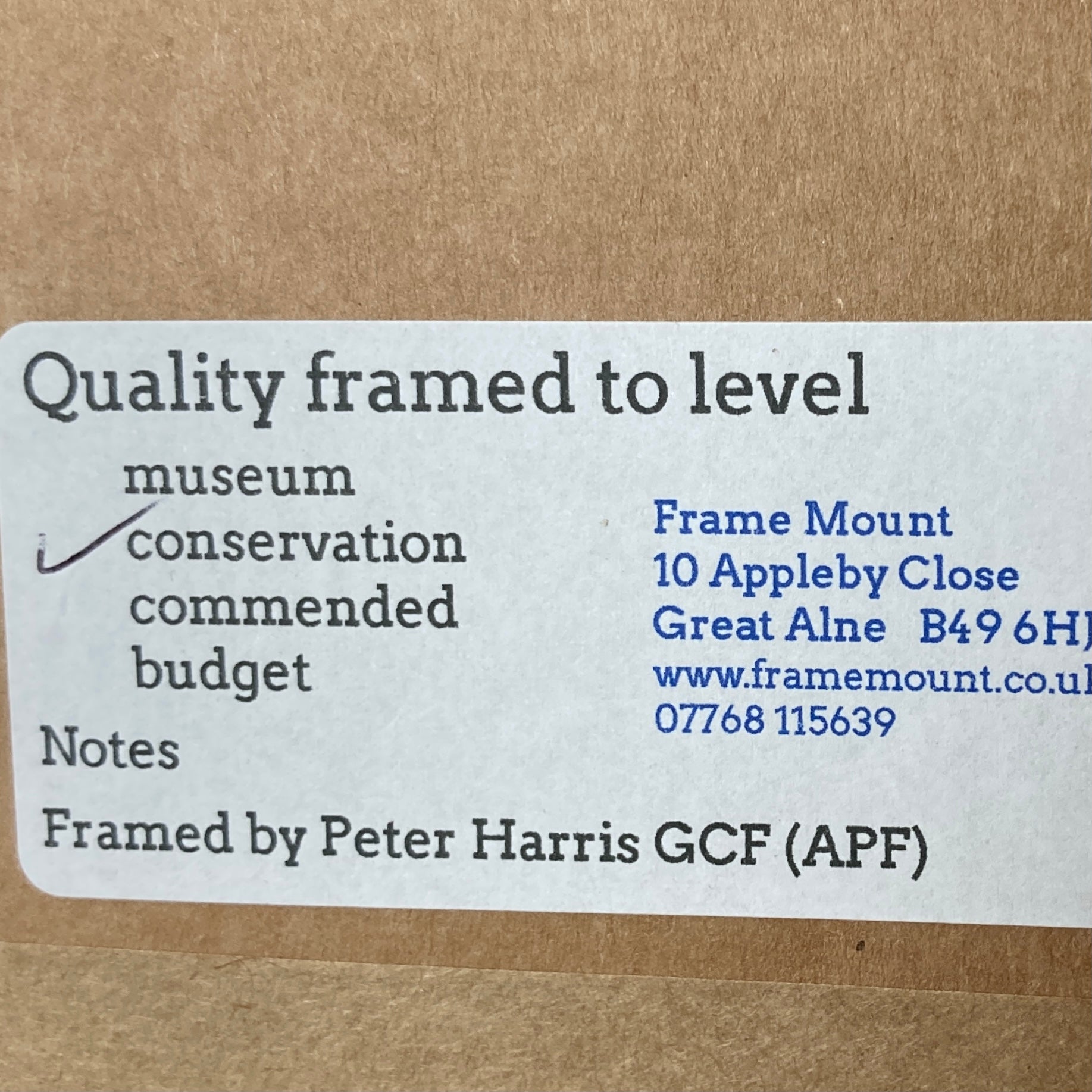 Framed art will only be sent via DPD Tracked delivery option as due to the fragility of the work, the less time spent in transit the better.