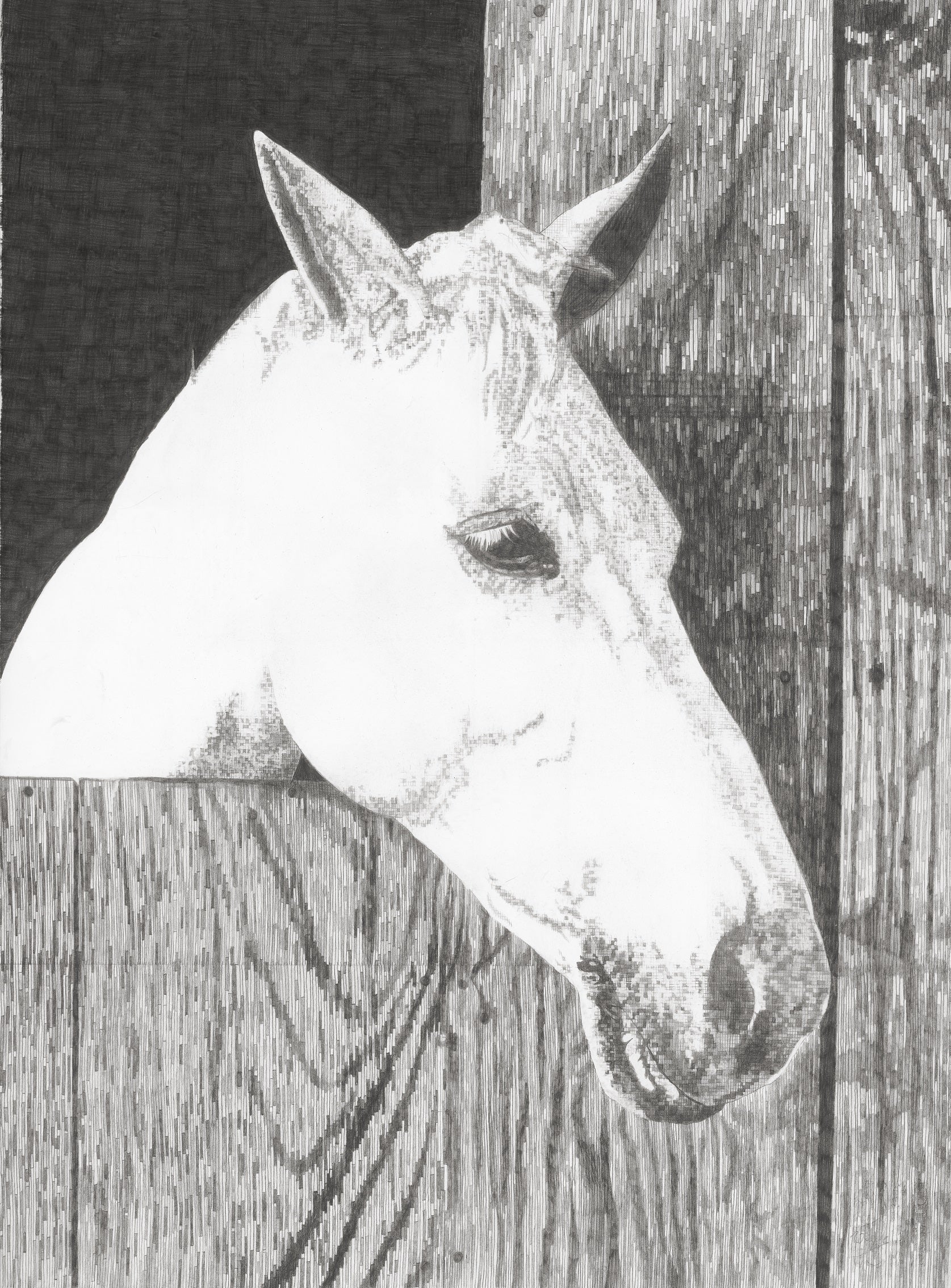 Large original framed drawing of a horse, James